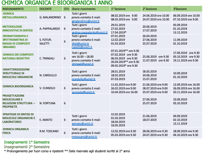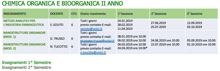 • PRIMO SEMESTREdal 08/10/2019 al 28/01/2020 (Finestra di sospensione attività didatticadal 18/12/2019 al 23/12/2019)