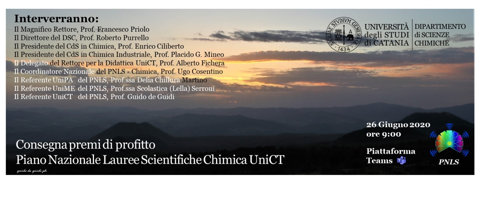 Link che descrive l'evento: https://www.unict.it/it/didattica/news/studenti-consegna-virtuale-dei-premi-del-piano-nazionale-lauree-scientifiche-chimica