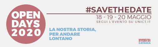 Da lunedì 18 a mercoledì 20 maggio si terranno gli “Open Days 2020 Home Edition” (Link: https://www.unict.it/it/didattica/open-days-2020-home-edition). Durante questi eventi verranno trasmessi i video di presentazione di ciascun dipartimento, una breve presentazione del COF&P e degli altri servizi di Ateneo rinviando, per i contenuti di approfondimento sui corsi di laurea, ai siti dei Dipartimenti. Il COF ha messo a punto la rubrica “L’#orientamento non si ferma” http://www.cof.unict.it/content/orientamentoadistanza che farà parte integrante del programma dei “Open Days 2020 Home Edition”. Si tratta di una raccolta di contenuti navigabili e già presenti on line, utili agli studenti che, negli intervalli della didattica a distanza, vogliono continuare il loro percorso di orientamento e pensano al proprio futuro universitario: presentazioni e video presentazioni del Corso di studi, video lezioni, fotogallery, virtual tour, etc. Ogni giornata sarà dedicata ad un raggruppamento ERC: